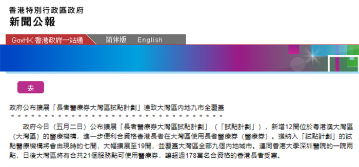 2025-05-08南醫(yī)八院入選香港長者醫(yī)療券大灣區(qū)試點計劃