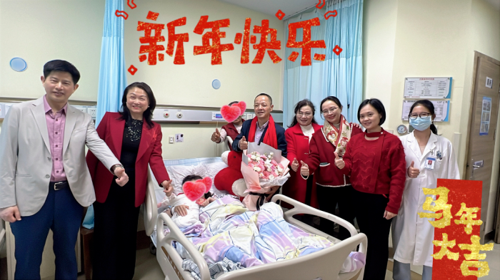 新春送暖,情意綿長(zhǎng)。醫(yī)院領(lǐng)導(dǎo)和產(chǎn)科主任、護(hù)士長(zhǎng)親切看望了春節(jié)寶寶和產(chǎn)后媽媽,送上節(jié)日祝福與誠(chéng)摯關(guān)懷,同時(shí)向節(jié)日期間堅(jiān)守一線的全體醫(yī)護(hù)人員致以問(wèn)候,感謝大家用專業(yè)與愛(ài)心守護(hù)母嬰平安。