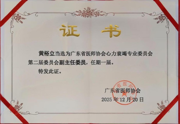 2026-01-13心尖聚力,領(lǐng)航前行——黃裕立主任醫(yī)師當(dāng)選省心衰專(zhuān)委會(huì)...